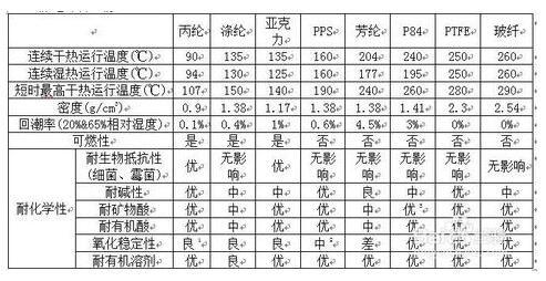(1)丙綸的運行溫度為90℃,連續濕熱運行溫度為94℃,短時最高干熱運行溫度為107℃,密度0.9,是可燃性材料,耐生物抵抗性性能優,耐堿性性能優,耐礦物酸性能優,耐有機酸性能優,氧化穩定性良,耐有機溶劑污染性能優;