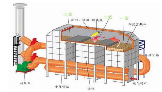當有機廢氣流量大、濃度低、溫度低,且催化燃燒需要大量燃料時,有機廢氣可通過吸附裝置吸附在吸附劑上進行濃縮,然后通過熱空氣吹掃將有機廢氣解吸成高濃度有機廢氣(可濃縮10倍以上),然后進行催化燃燒。此時,無需添加熱源即可維持正常運行。