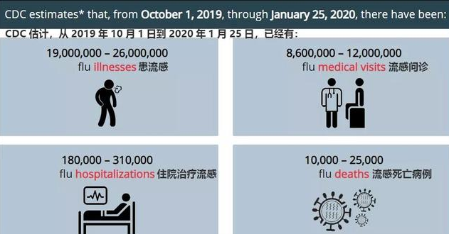 美國疾控中心的專家表示,流感對全美公眾健康的威脅顯然比新型冠狀病毒更大。此次流感季始于2019年9月、可能持續到2020年5月。